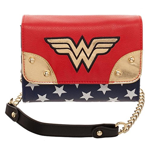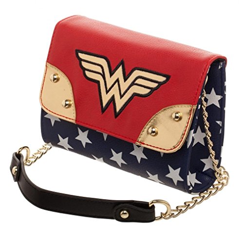 Studio : BioWorld Publisher : BioWorld Product Description DC Comics Wonder Woman Juniors Mini Sidekick Handbag Who's your favorite warrior princess? Wonder Woman, of course! Show off your love with this stylish Wonder Woman handbag. -Officially licensed product -Dimensions: 6" H x 7" W x 3" D -Material: Polyurethane (faux leather look) -snap style closure with 1 small inner zippered compartment -chain style shoulder strap -Wonder Woman embroidered logo -Rich red, blue, gold and white colors You'll never have to worry about forgetting your most important items ever again! 0