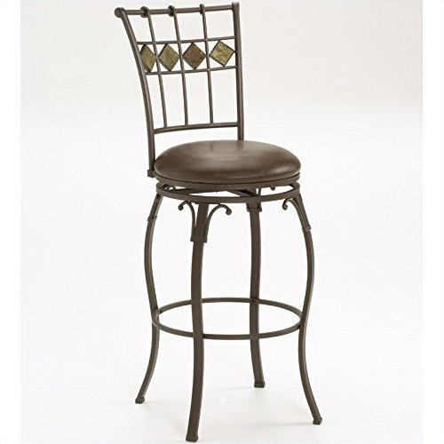 -. Feature : Dimensions: 21.25W x 17D x 44.5H inches / Diamond-shaped slate accents on backrest / Durable metal frame, brown leather seat / Brown finish for a warm, sophisticated look / Convenient swivel mechanism for easier in and out