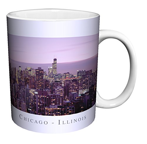 -. Title : Chicago Illinois Purple Skyline City Photography Ceramic Gift Coffee (Tea, Cocoa) 11 Oz. Mug
