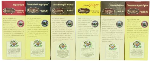 -. Feature : Contains: 1 box each of Cinnamon Apple Spice, Lemon Zinger, Mandarin Orange Spice, Peppermint, Devonshire English Breakfast, & Victorian Earl Grey / [Amazon Frustration-Free Packaging] / Ships in Certified Frustration-Free Packaging