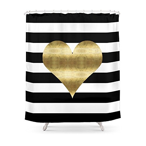 YEHO Art Gallery Bath Curtain with Printed 3D Magic Mysterious Gold Heart Black And White Stripe Pattern Fabric Waterproof Barthroom Shower Curtain with Hooks 70x78 inches