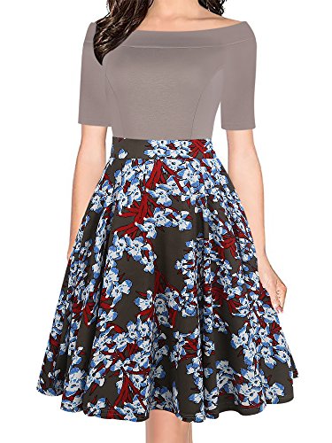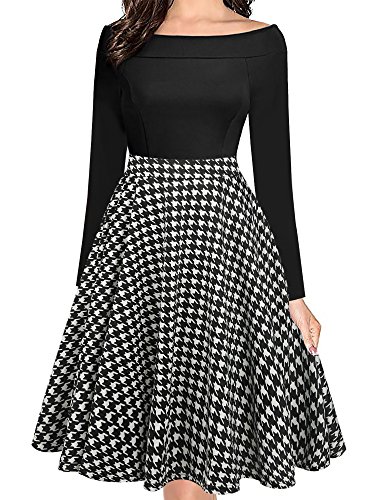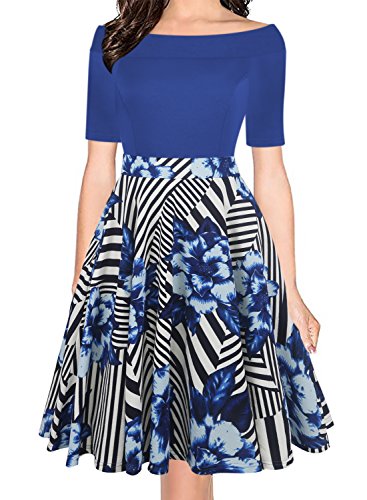 Women's Vintage Casual Off Shoulder Pockets Cocktail Work Swing Dress Brand Name:oxiuly