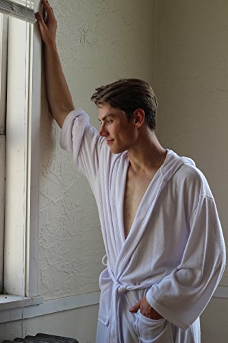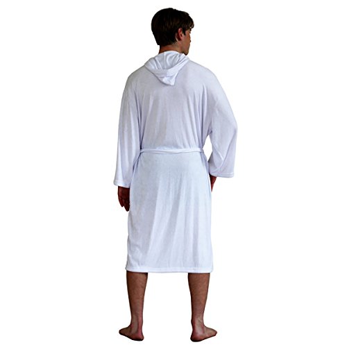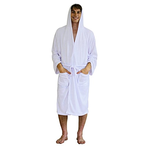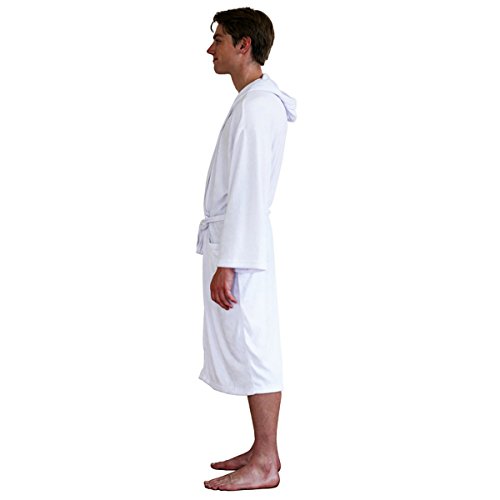 Mens Robe – Hooded Terry Cloth Bath Robe, Lightweight Cotton Shower Long Bathrobe for Travel or Spa (Large/XL - White)