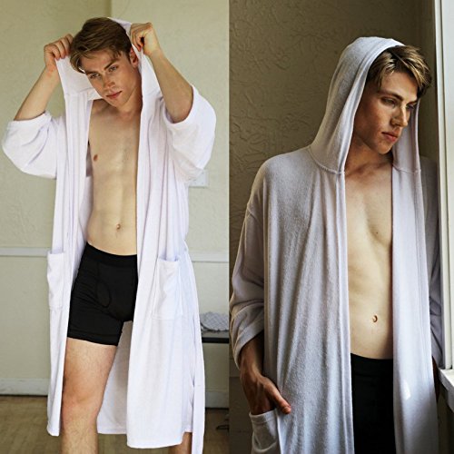 Mens Robe – Hooded Terry Cloth Bath Robe, Lightweight Shower Long Bathrobe for Travel or Spa (Small/Medium - Grey)