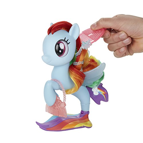 -. Feature : Imagine surfing stories with board and sail vehicle / Includes beach themed accessories / Pet turtle figure fits into scooter / Rainbow Dash seapony figure / Inspired by My Little Pony: The Movie / Includes seapony figure, pet figure, 2 vehicles, and 7 accessories. Ages 3 and up.