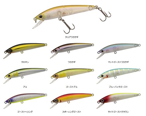 -. Feature : カラー:ゴーストアユ / サイズ:60mm / 標準自重:3.5g / フック仕様:サクサス#10 / フィネスの追求: 重心移動などを廃し、固定ウエイトとすることで完全サイレント化。フィッシングプレッシャーが強い時や低活性のバスに、よりナチュラルにアピールすることが可能。また、サクサスフックを搭載したことでショートバイトにも対応。激タフコンディション下で驚きの効果を発揮する。 / リトリーブでのナチュラルアクション:水つかみの良いリップが、ただ巻きでのリトリーブアクション時に左右へのヒラヒラと細かいロールアクションを演出。バスの存在に気付かない無防備な小魚を演じ、食性を刺激する。 / トゥイッチでのダートアクション: レスポンス向上を追求した固定ウエイトと水つかみの良いリップとの相乗効果でキレの良いダートアクションを実現。前のめり気味にサスペンドすることで動と静のメリハリが生まれ、リアクションバイトを誘発する。
