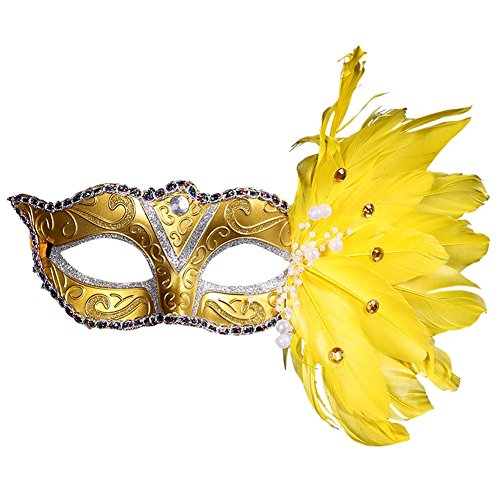 -. Title : JudyBridal Masquerade Venetian Ball Costume Party Plastic Feather Mask with Crystal