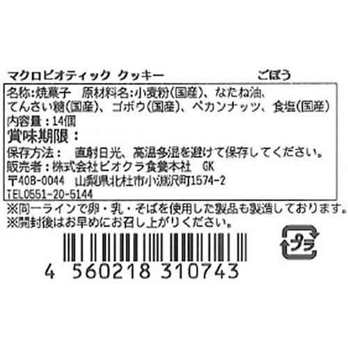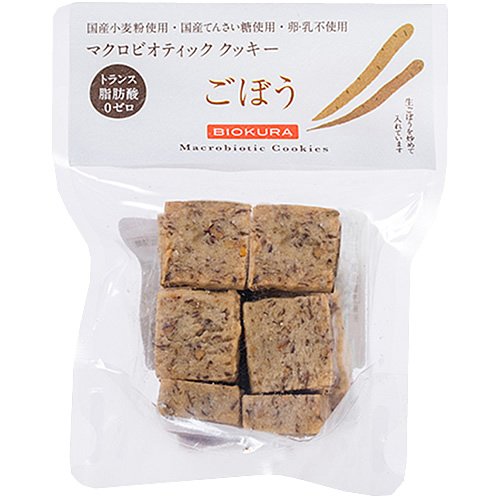 原材料:小麦粉(国産)、なたね油、てんさい糖(国産)、ゴボウ(国産)、ペカンナッツ、食塩(国産)