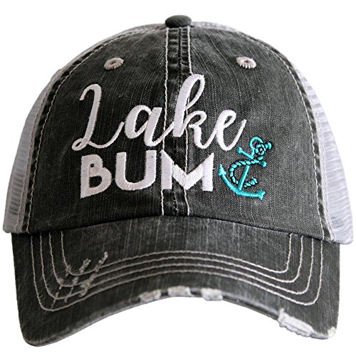-. Binding : Apparel -. Brand : Katydid -. Department : womens -. Feature : One size fits most, with an adjustable Velcro tab / Curved bill for a comfortable fit and great sun protection / Mesh back for comfort and breathability / Authentic distressed detailing; 80% Cotton, 20% Poly / Designed and embroidered in the USA by Katydid -. Model : KDC-TC-408 -. ProductGroup : Apparel -. ProductTypeName : HAT -. Title : Katydid Lake Bum Women's Baseball Hats Caps