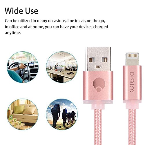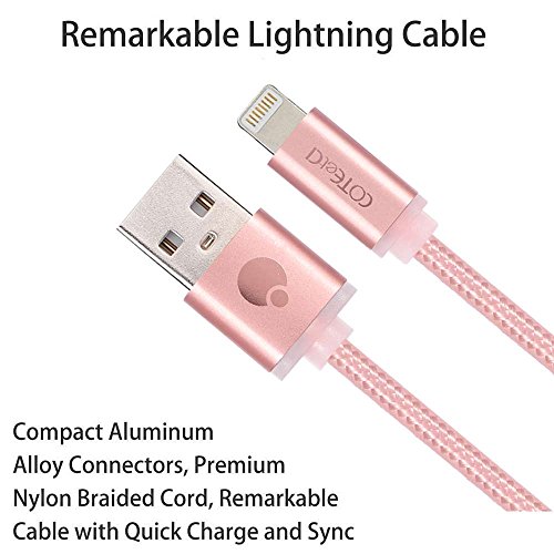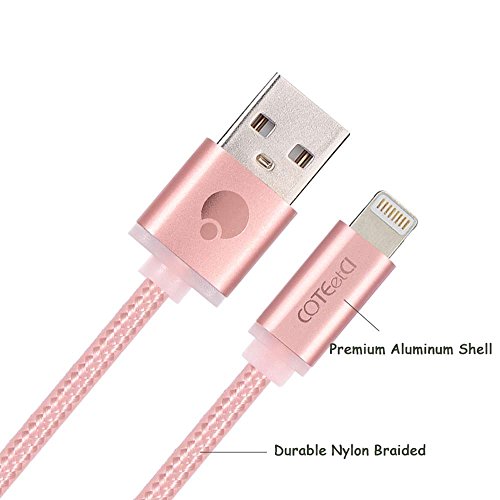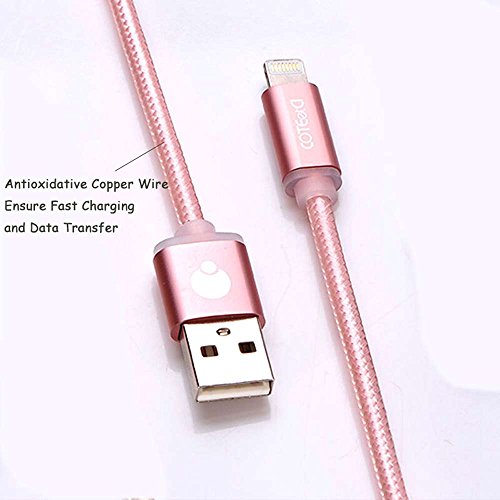 Lightning USB Cable,10Ft Nylon Braided Fast Charging Cable Sync and Charger Cord for iPhone 7/7 Plus/6/6S/6 Plus/6S Plus/5/5S/5C/SE, iPad Mini 2 3 4 Air iPod and More-Rose Gold