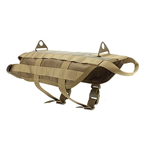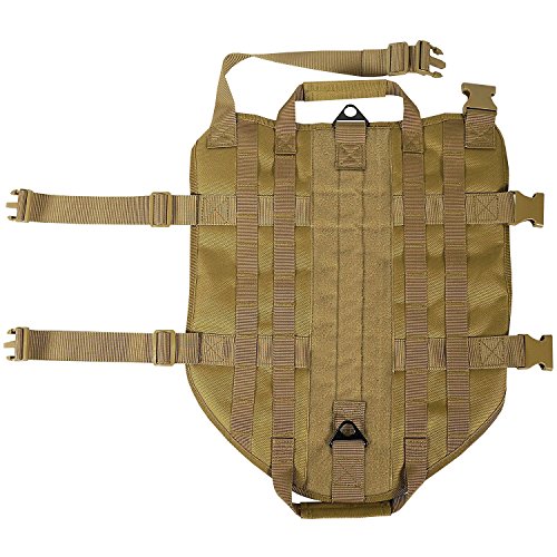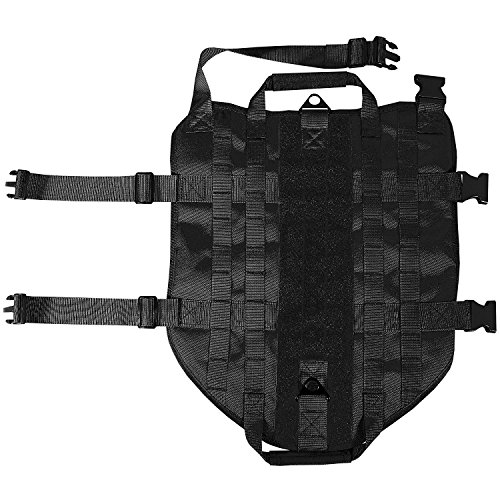-. Brand : OSPet -. Feature : Material: 1000D Nylon durable for outdoor training, breathable mesh padding for comfort & sweat-absorbent / Molle Dog Vest: Two-sides molle webbings allows attaching any MOLLE compatible medical and treat/water pouch while hiking, travel walking and training / Easy-control handle: Nylon grab handles and metal clips at each end (neck and rear) provide great overall control over the dog. / Wide Hook & Loop Area: Provides space for name tapes, patches or whatever patches you may need / Adjustable Strape: Each strap can be adjustable for wearing stability and comfort -. Label : mondon -. Manufacturer : mondon -. MPN : dogpack001 -. PartNumber : dogpack001 -. ProductGroup : Sports -. ProductTypeName : OUTDOOR_RECREATION_PRODUCT -. Publisher : mondon -. Studio : mondon -. Title : OSPet Tactical Dog Training Harness MOLLE Dog Tactical Training Vest with 2 Pulling Handles, Large Size Available