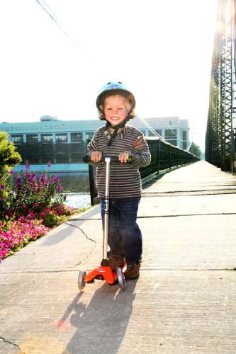 - Feature : The mini scooter is the quality scooter for young children ages 3-5. Its unique 'lean-and-steer' design gives kids the feeling of 'surfing' the sidewalk. / * The front wheels are 4-inch in diameter and the one in back is 3-inch and made of polyurethane. / * The two wheels in front are placed 8 inches apart for stability. / * The handle grips are a thick, durable, comfortable rubber. / * The length of the deck is 300mm.