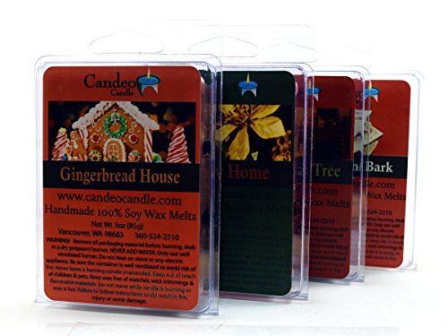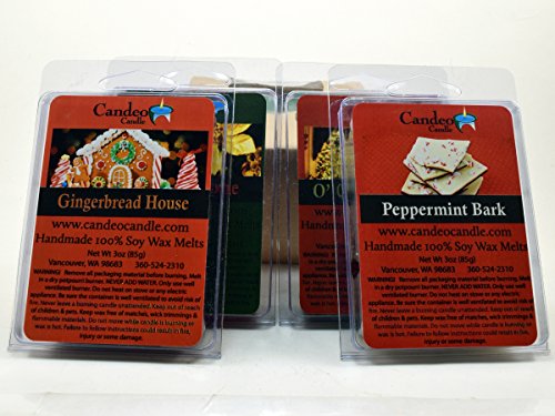 Christmas Soy Melt Cube Variety 4-Pack, 1 each of Peppermint Bark, O'Christmas Tree, Holiday Home, and Gingerbread House