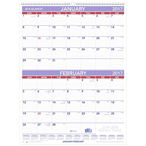 -. Title : AT-A-GLANCE Wall Calendar 2017, Two Month View, 22 x 29", Red, White & Blue (PM9-28)