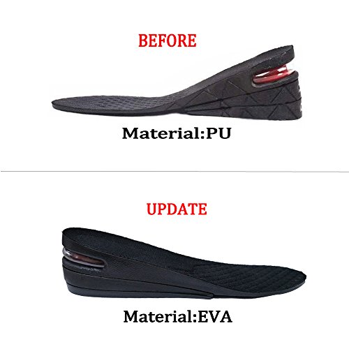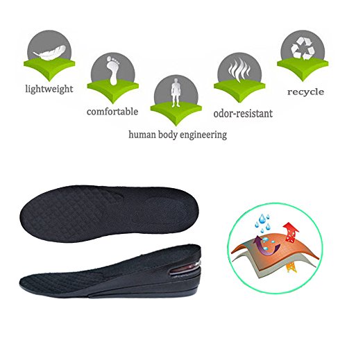 - Eco-Friendly And Fashion - Our height adjusting shoe insoles are made of air cushion and high quality EVA materials. you can experience the comfort, feel, and breathability. Color: Mainly black for men and women.