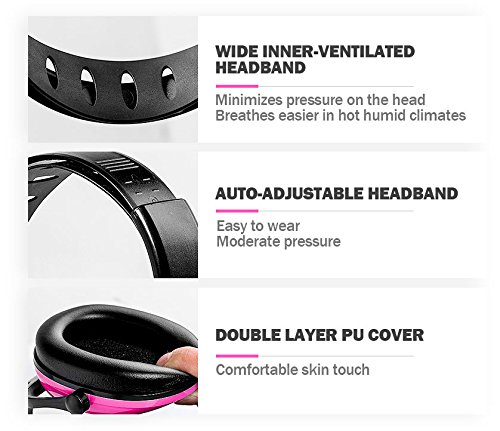 EZARC Comfortable Women and Kids Safety Ear Muffs 30dB for Hearing Protection - Noise Reduction Earmuffs for Shooting Sports Events Reading , Pink