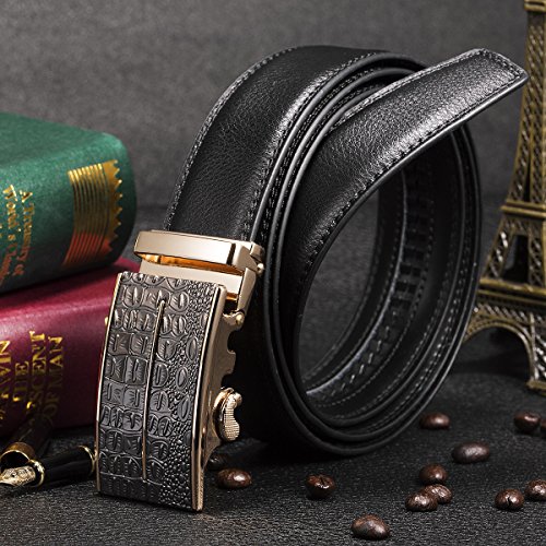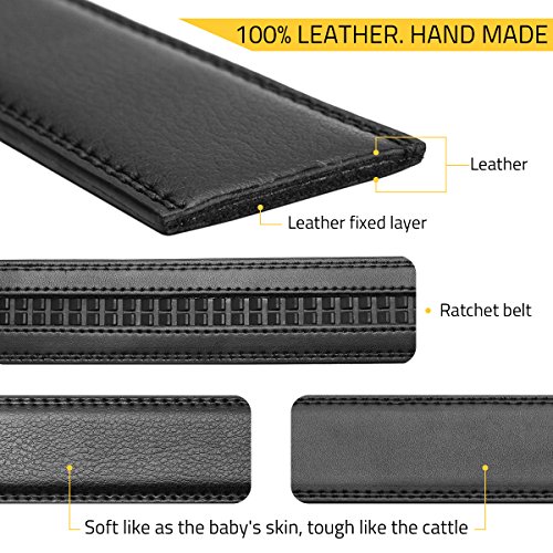 - Auto Lock Buckle (Sliding Buckle), No holes in belt, fits most size.