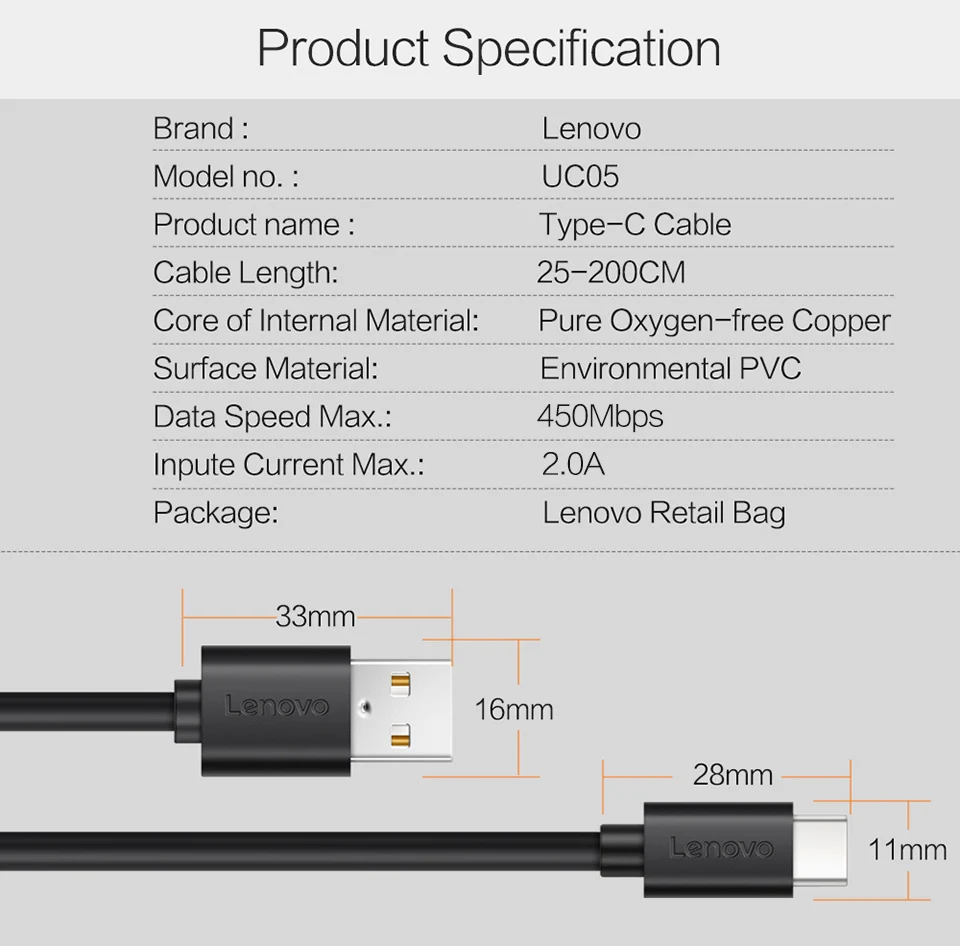 Item Name:Lenovo Type-C USB Quick Charge & Data Cable