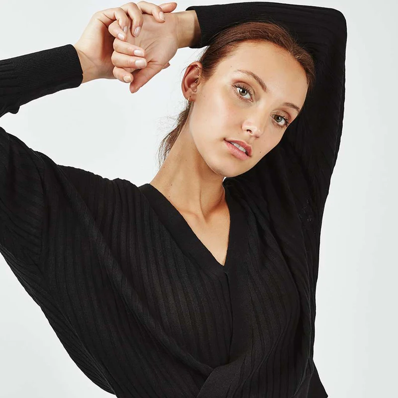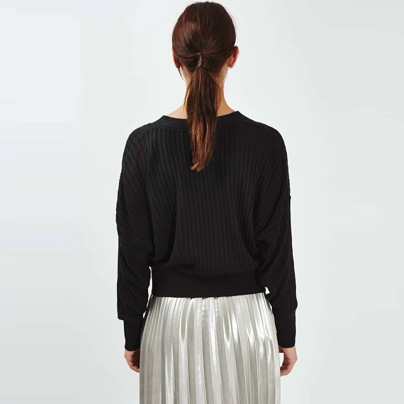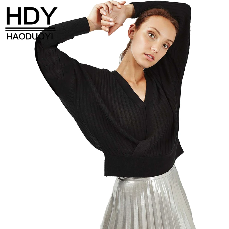 HDY Haoduoyi Fashion Knitted Tops Women Long Sleeve V-neck Female Pullover Tops Loose Autumn Solid Black Casual Sweatshirts | ||||||||||||||||||||||||||||||||||
