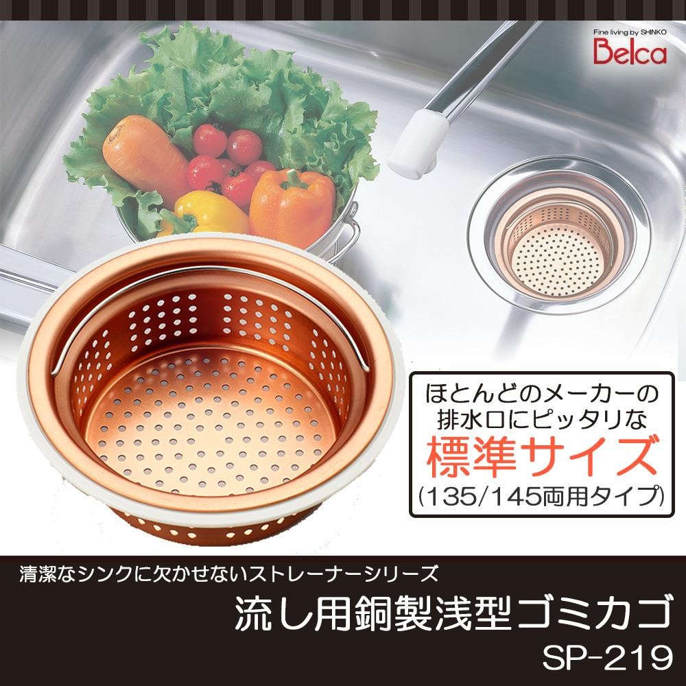 ほとんどのメーカーの排水口にピッタリな標準サイズ(135/145両用)の流し用ゴミカゴです♪ 製造国:日本 素材・材質:本体:銅ハンドル:ステンレス(SUS304)アダプター:PP ※サプライヤー直送品 ご注文後2~3営業日後の出荷となります【商品名】Belca(ベルカ) 流し用銅製浅型ゴミカゴ 135/145両用タイプ SP-219