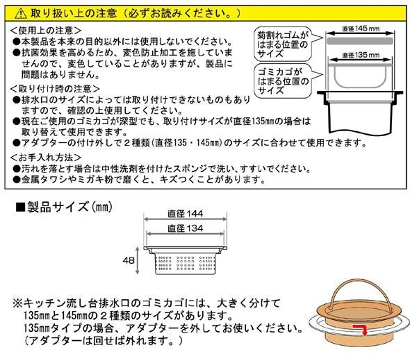 ほとんどのメーカーの排水口にピッタリな標準サイズ(135/145両用)の流し用ゴミカゴです♪
