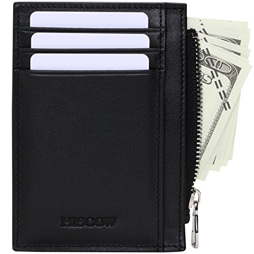 -. Binding : Apparel -. Brand : HISCOW -. Color : Black -. Department : mens -. EAN : 0711420235735 -. Feature : Italian full-grain calfskin (Smooth) / Interior details: 8 card slots, 1 center big slot with metal zipper holds cash, coins and cards / Measures: 4.52 x 3.26 x 0.7 (inches) closed empty / Made in Italy / Black gift box with Tags -. IsAdultProduct : 0 -. PackageQuantity : 1 -. ProductGroup : Apparel -. ProductTypeName : ACCESSORY -. Size : One Size -. Title : HISCOW Front Mini Card Holder Pocket with 8 Credit Card Slots - Italian Calfskin -. UPC : 711420235735