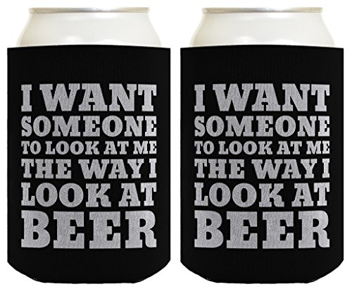 Look at Me Like I Look at Beer 2 Pack Can Coolie Drink Coolers Coolies Simulated Diamond Plate