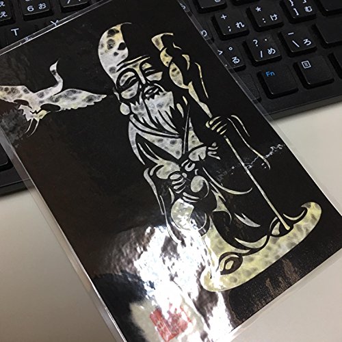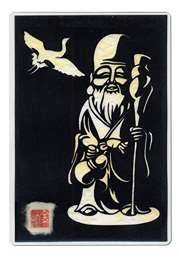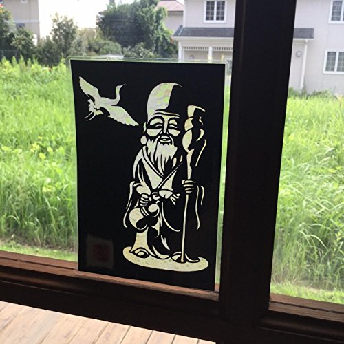 Cutout picture Japanese art collage KIRIE “Seven Lucky God · Hukurokuzyu” Seven Deities(Gods) of Good Fortune Made by Washi(Japanese paper) Blurred Yellow, 4” x 6”