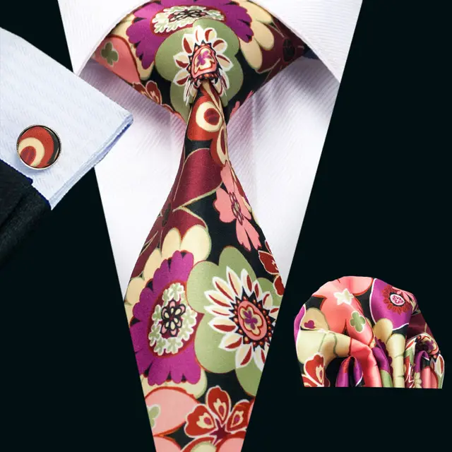 LS-1257 남성 넥타이 여름 100% 코튼 패션 인쇄 고품질 브랜드 디자인 넥타이 손수건 커프스 세트 파티 웨딩