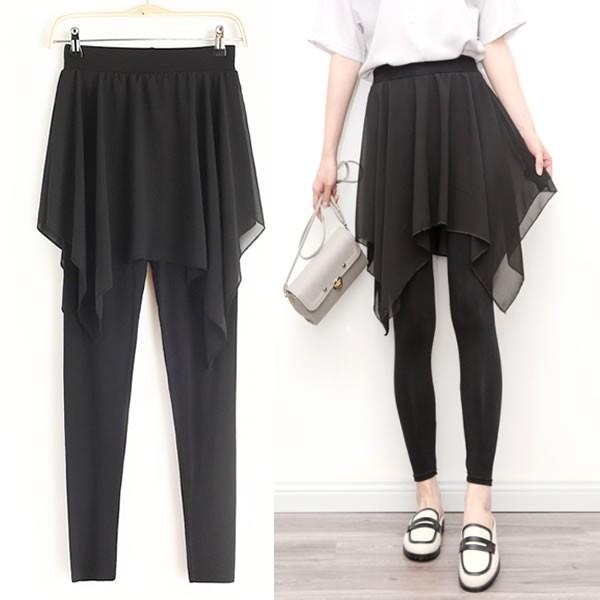 | シフォン アシンメトリー スカート ドッキング レギンス スパッツ 黒 無地 【アシンメトリー スカート レディース 女性 黒 ブラック セクシー ダンス衣装 スカート バレエ 社交ダンス レギンス パンツ スパッツ】 | |