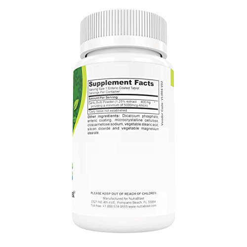 -. Title : NutraBlast Garlic Bulb Powder 400Mg Extract Enteric Coated - Supports Low Cholesterol, Healthy Blood Pressure Levels, Immune System, Hair, Skin, and Nails Health - Made in USA (60 Coated Tablet)