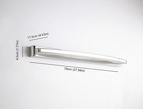 - The width is 27.56in and depth is 4.53in, the lumen output of whole fixture is 800lm (equivalent of 60w incandescent or 13w CFL), bright enough to light up a vanity but not be the sole source of room light.