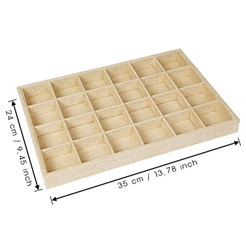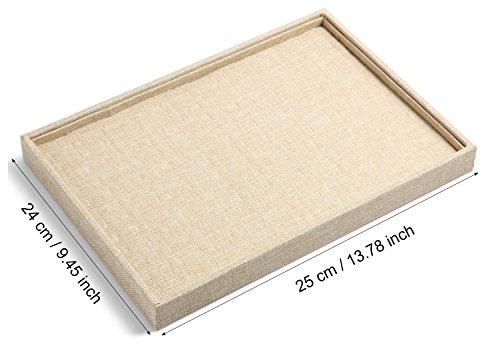 -. Feature : ❀Dimension (L x W x H):13.8" x 9.4" x 1.2" / 35 x 24 x 3cm / ❀Excellent quality linen and super soft removable compartment dividers fit most sizes and styles of jewelries. / ❀These stackable jewelry trays hold all your jewelry and conveniently stack or separate so that you can store them on your dresser or in your drawers much more easily than a conventional jewelry box. / ❀This elegant jewelry box makes the most presentable gift for your mother, girlfriend, wife, daughter or friends. / ❀Suitable for many occasion,such as jewelry stores, antique shops and home organization.