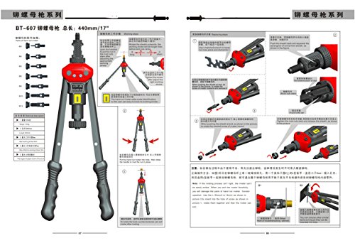 Q&R 17" 440mm M3 M4 M5,m6,m8,m10 M12, 10-24, 1/4-20 , 5/16-18,3/8-16 ,Hand Riveter Rivet Gun, Riveting Tools with Nut Setting System M3-m12 Bt607