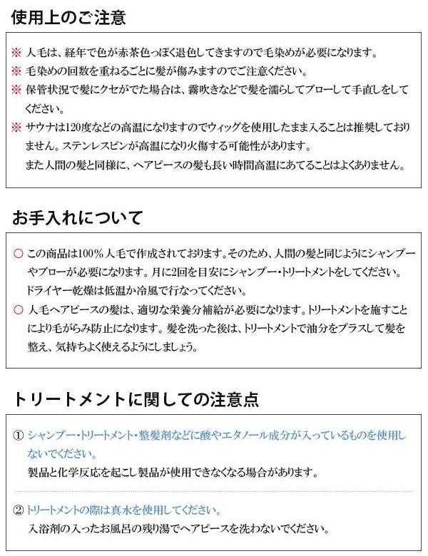 | 仕様 | 3カ所ピン付き 毛染め可(ただし毛染めの回数を重ねるごとに髪が傷みます) カラー:明るめのナチュラルブラック 説明書付き |