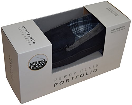 -. Binding : Apparel -. Brand : Perry Ellis -. Color : Grey/Black -. Department : mens -. EAN : 0700118158494 -. Feature : Exterior is made of micro suede material with interior in flannel plaid material / Fully lined interior and cushioned footbed bottom / Slip-on indoor moccasin design. Surface clean with soft cloth / Each pair is packed in a nice gift box. This is the perfect gift for him. / Rubber non-skid sole. Available in Medium, Large, X-Large and XX-Large sizes. -. MPN : LYSB01M1BI4C6-MNFSHSHOE -. PackageQuantity : 1 -. PartNumber : LYSB01M1BI4C6-MNFSHSHOE -. ProductGroup : Shoes -. ProductTypeName : SHOES -. Size : L 9.5-10.5 -. Title : Perry Ellis Men's Moc With Contrast Moccasins Slippers (L 9.5-10.5, Grey/Black) -. UPC : 700118158494