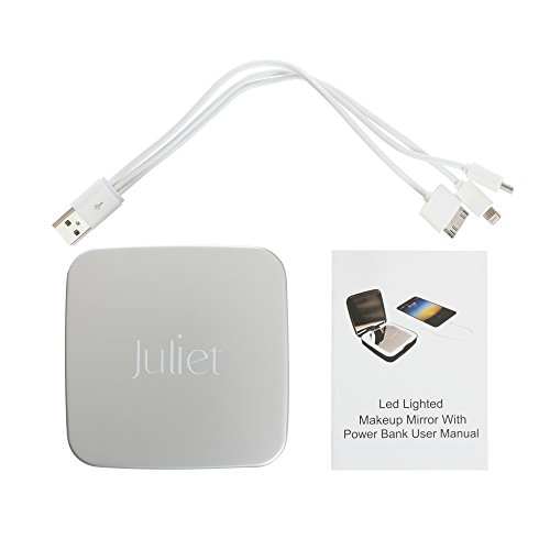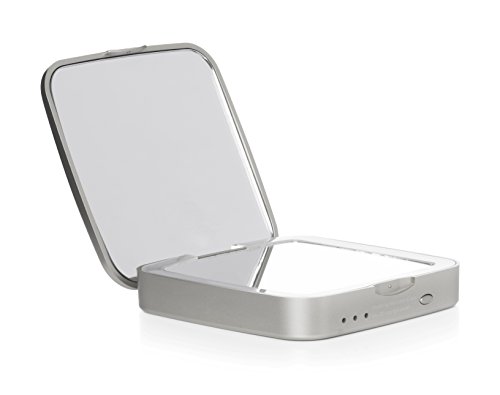 Juliet Lighted LED Travel Compact Make-up Powerbank Mirror for iPhone, Tablets, & More, Silver