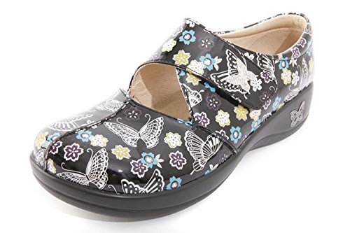 Professional Nursing shoe featuring a beautiful white floral printed leather with a silver side button.