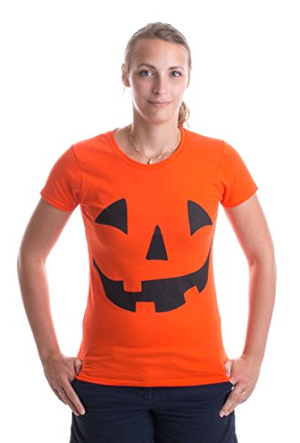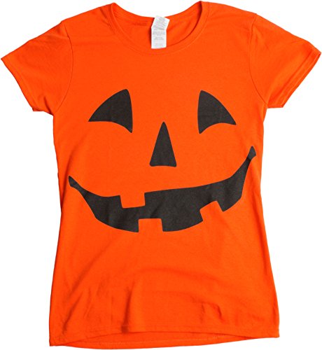 -. Binding : Apparel -. Brand : Ann Arbor T-shirt Co. -. Color : Orange -. Department : womens -. Feature : Designed and printed in Ann Arbor, Michigan / 100% pre-shrunk cotton t-shirt / All shirts ship within 1 business day of order. / Commercial grade, durable print professionally applied / Men's, Women's and Youth version available for most of our products -. ProductGroup : Apparel -. ProductTypeName : SHIRT -. Title : JACK O' LANTERN PUMPKIN Ladies' T-shirt / Easy Halloween Costume Fun Tee