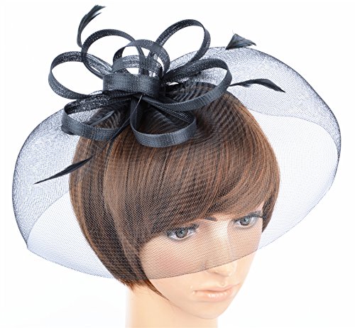 -. Title : Womens Ladies Formal Feather Net Cocktail Hair Clip Fascinator