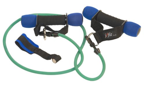 Product Description With the JFit heavy handles and medium tube, the resistance from the dumbbells never changes, while the resistance from the tubing increases throughout the exercise motion. The Jfit Heavy Handles with Medium Tubing combines two variations of resistance making the exercise motion more efficient in toning and building lean muscle. Create a body sculpting program that will tone you from head to toe, and help you gain up to three times as much strength than traditional weight training alone. 0