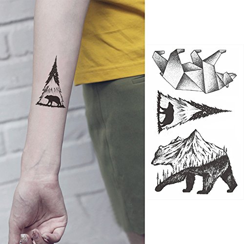 -. Title : Set of 2 Waterproof Temporary Fake Tattoo Stickers Cool Grey Forest Mountain Bear Dotwork Design