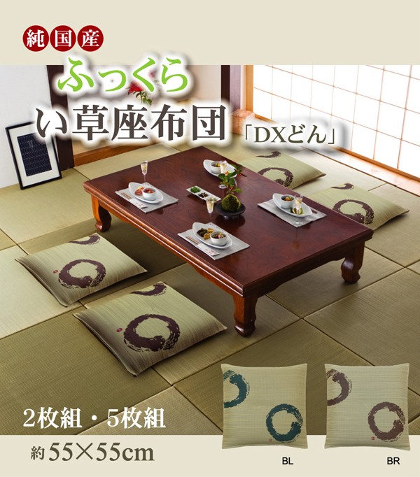 【商品名】中わた1.5倍 純国産 捺染千鳥 い草座布団 『DXどん 2枚組』 ブルー 55×55cm×2P
