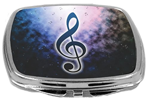 Rikki Knight Compact Mirror, Blue Music Notes On Smokey Background