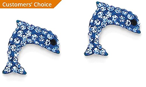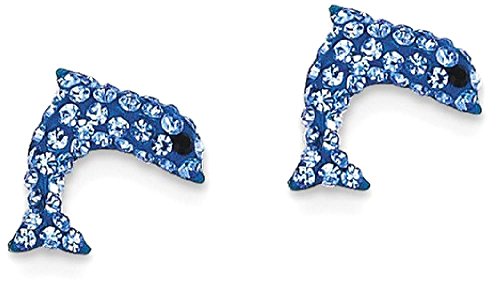 ICECARATS DESIGNER JEWELRY 14K YELLOW GOLD CRYSTAL BLUE DOLPHIN POST STUD BALL BUTTON STUD EARRINGS