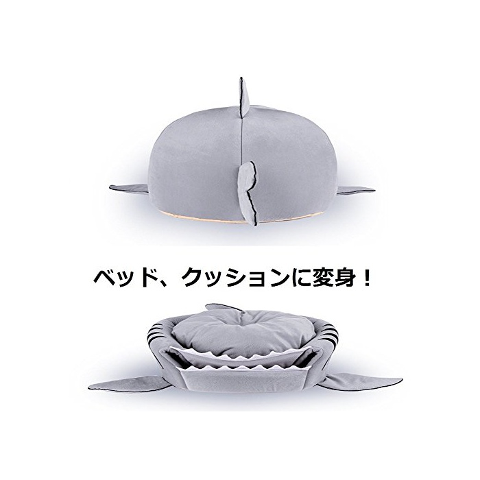 원본상품명:ペットハウス 猫ベッド 犬ハウス 鮫型 ド?ム型 室?用 犬猫 ソファ サメ型 猫ソファ? マット付き 洗える …