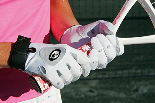 Amazon.com The women's tennis glove from Bionic is designed by an orthopedic hand surgeon to provide performance enhancing moisture control, grip, support, and durability for your game. The glove's palm is constructed of sheepskin leather for a secure hold while Coolon moisture control fabric on the back of the hand provides flexibility and evaporative cooling. The glove's anatomical pad system evens out the surface of the hand for a lighter, more secure grip and also reduces fatigue. Meanwhile, the glove's form-fitting wrist closure provides the stability and support you need to return the ball with confidence--without sacrificing flexibility and mobility. Finally, the glove keeps moisture in check with twelve terry cloth mini-towels inside of the glove to absorb sweat and prevent slippage.  The Bionic Tennis Glove offers an enhanced grip on the court. | Exclusive Glove Technology--Developed by an Orthopedic Hand Surgeon to: Reduce Hand Fatigue--Increase Grip Strength--and--Support the Hand's Natural Dexterity - Anatomical Relief Pad System: The hand has natural peaks and valleys determined by the placement of the bones. Typically the high points of the bone rub against tools and equipment, causing blisters, calluses, and fatigue. Bionic gloves are designed to solve this problem with strategically placed pads in the glove, that eliminate the peaks and valleys--evening the surface of the hand--to result in improved grip strength, reduced hand fatigue, and reduced friction--to virtually eliminate calluses and blisters.