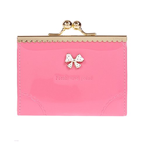 Hergestellt aus Kunstleder.Die Münzbörse hat nicht nur tolle Qualität,sondern auch gute Verarbeitung.Im Außen steht metallische Schleife.Im Innen befindet sich 6 Kartenfächer und ein doppeltes Fach für Münzen oder Karten.Durch Metallbügel verschlossen.Handlich in der Hand zu tragen.Jetzt bieten wir sechs Farben:grün,hellblau,wassermelone,rosa,lila und schwarz.Maße:12x9x1cm.Feature