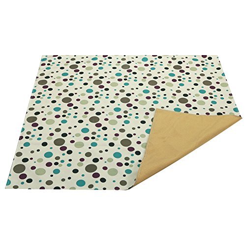 -. Feature : Material: The front is 100% Polyester , the back side is anti-skid cloth / Storage: Folds away for easy storage / Clean: Easy to Clean ,Machine Washable / Safety: Anti-slip granules backing to hold the cover in place / Protect Clean:Protects floor and carpet from children's mess, spills, food, paint, etc