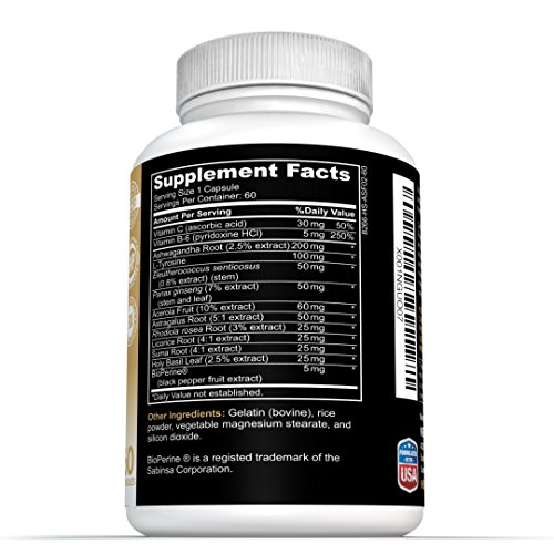 Our Adrenal Support with Ashwagandha is comprised of just the herbs that are needed to support the adrenal glands and body's stress response. *Ashwagandha-has been shown to significantly reduce cortisol(stress hormone) concentrations *L-Tyrosine-is an amino acid that is used to produce dopamine and noradrenaline (anti-stress response) *Too many other beneficial vitamins and herbs to name *Feel better with our Adrenal Support Supplement. Combine with healthy lifestyle changes for best results.